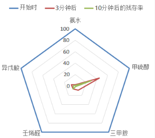 實(shí)驗(yàn)方法:將FRESHSHIRAIMATS®與惡臭成分同時放入密封的容器中,經(jīng)過一定的時間后,用下述方法測量容器最頂部的氣體的濃度